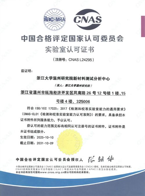 近日,我院新材料测试分析中心(以下简称“中心”)在经过严格的评审与考核后,正式获得中国合格评定国家认可委员会(CNAS)授予的实验室认可证书(注册号:CNAS L24295)。这标志着中心的检测能力与管理体系已达到国家和国际标准,继此前获得检验检测机构资质认定(CMA)后,技术实力与公信力再上新台阶,实现了从“合法合规”到“国际互认”质的飞跃。